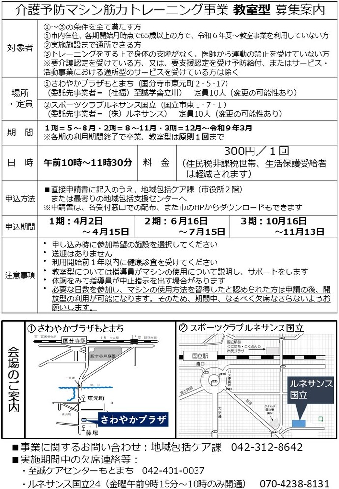 (2)スポーツクラブルネサンス国立24 住所:国立市東1-7-1[委託先事業者=(株)ルネサンス]
